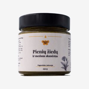 Išskirtinis derinys, sujungiantis natūralaus lietuviško medaus saldumą ir šaltyje džiovintų pušies kankorėžių naudą.